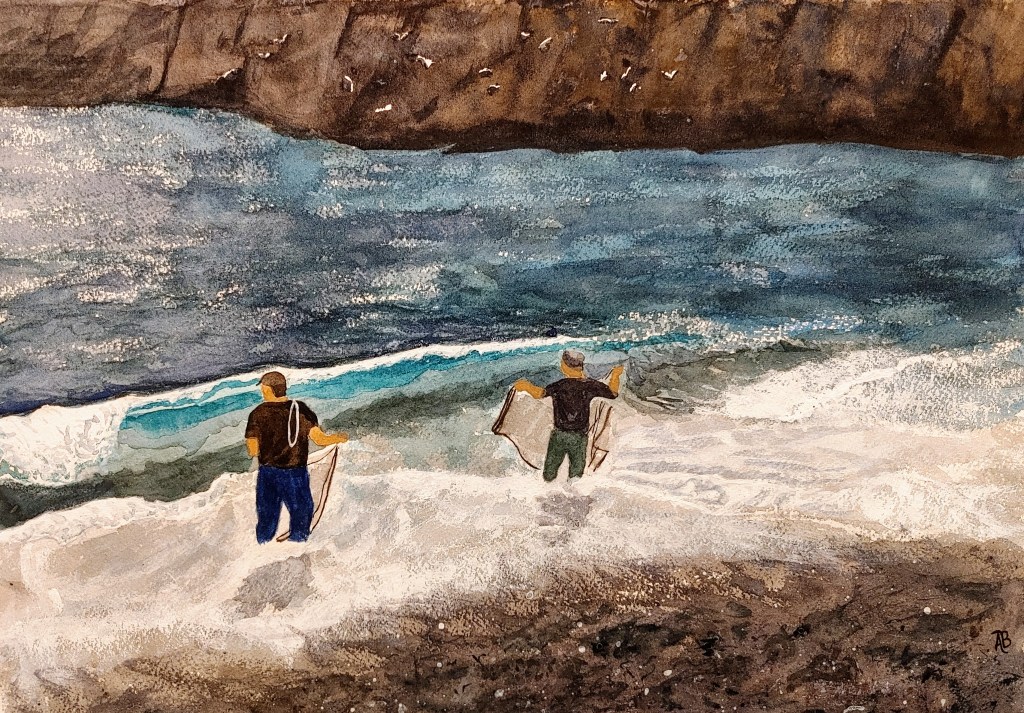 When the Capelin Roll 0 May 15, 2023May 22, 2023 Written by Amanda Watercolour on paper Professionally framed 22″w x 18″h $200 Share this: Share on X (Opens in new window) X Share on Facebook (Opens in new window) Facebook Like Loading... Related