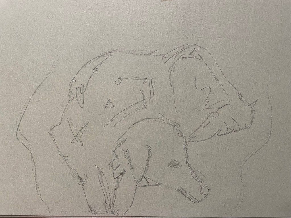 Now that I’ve sketched him, I feel guilty that I haven’t drawn or painted him more often. He really is a handsome old polar bear. I get told how handsome he is every day.