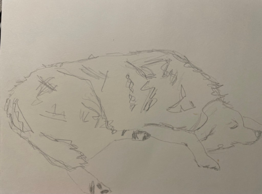 Someone asked me to do a commission painting of their dog today, which I accepted, but I haven’t done many paintings of dogs, so I decided to start practicing by sketching my dog.