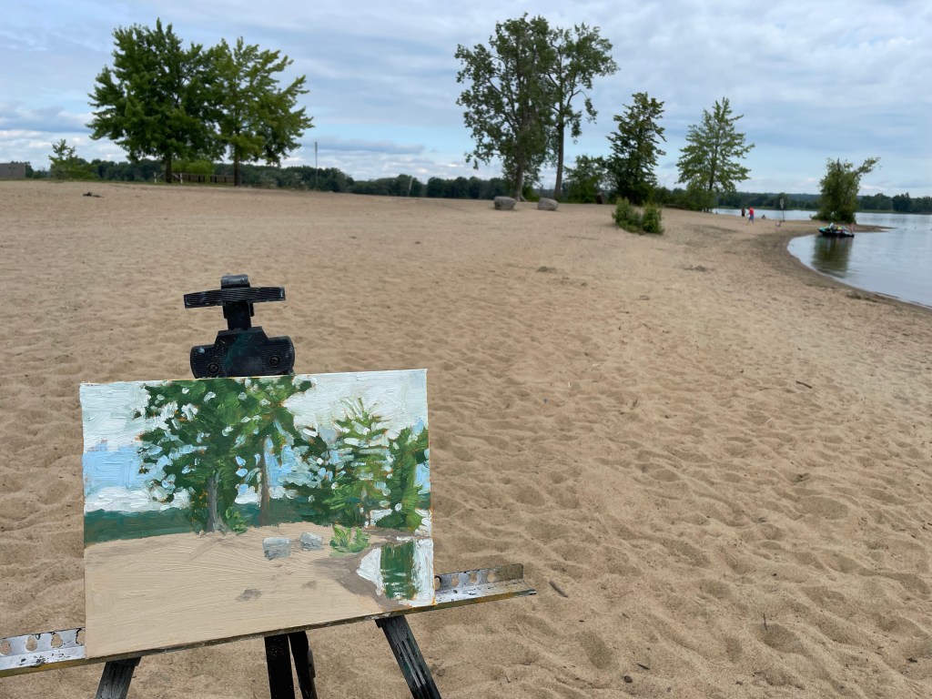 I wasn’t planning on doing a plein air painting this weekend, but my son was refereeing at a lacrosse tournament in the east end of Ottawa all weekend, so I decided to kill some time while I waited for him with a solo plein air session at Petrie Island.