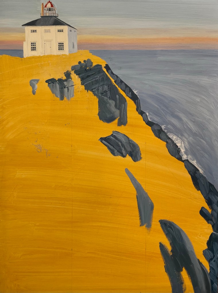 I haven’t posted in a while, and that’s because I’m working on a larger painting of Cape Spear, Newfoundland, so here is a progress update. This one is 30” x 40”. Still a lot of work to do yet.