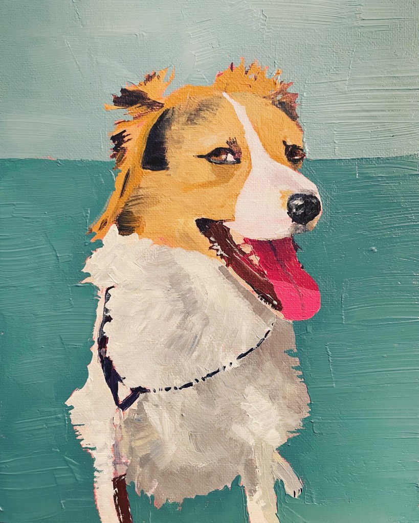 Here’s a recent commission I did for a neighbour who was caring for her friend’s dog. As a Christmas gift, she wanted to get a painting done of the dog, so she took a bunch of pictures of the dog in her backyard and sent them to me.